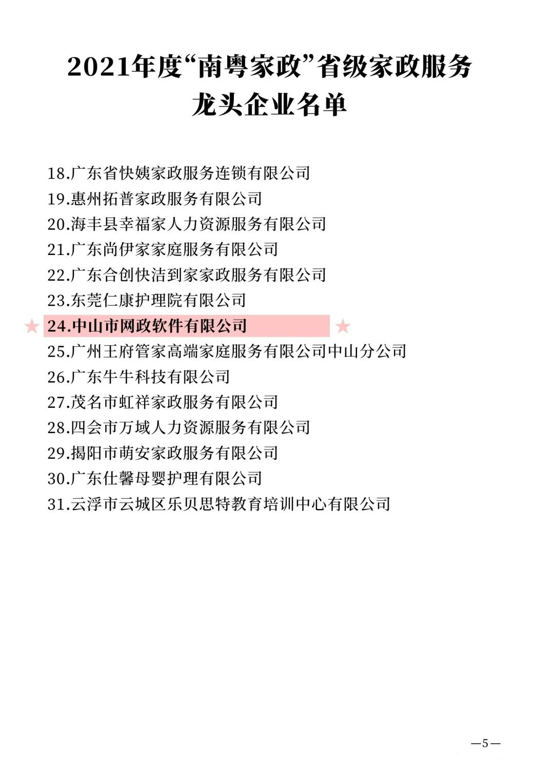 為扶持培育家政龍頭企業(yè)和誠信示范企業(yè),帶動我省家政服務(wù)行業(yè)發(fā)展壯大,根據(jù)省人社廳、省發(fā)改委、省商務(wù)廳《關(guān)于開展2021年度“南粵家政”省級家政服務(wù)龍頭企業(yè)和省級家政服務(wù)誠信示范企業(yè)認定工作的通知》(粵人社函〔2021〕212號)的部署安排,我們通過組織地市初評推薦、省級綜合評審以及面向社會公示,完成了2021年度“南粵家政”省級家政服務(wù)龍頭企業(yè)和省級家政服務(wù)誠信示范企業(yè)評選認定工作。中山市網(wǎng)政軟件有限公司被評為2021年度“南粵家政”省級家政服務(wù)龍頭企業(yè)!